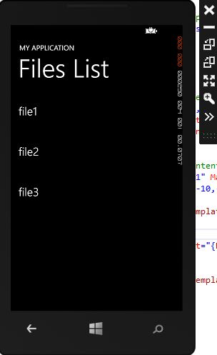 We are going to display the List of File Names using the LongListSelector control. In the code behind file, we handle the “OnNavigatedTo” event and call the “GetFilesList” function which has below code